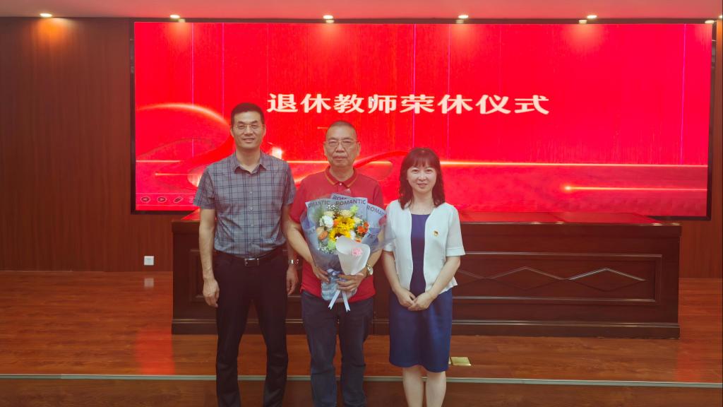 当天的活动还为从教37年的罗亚非教授举行荣休仪式,罗老师的学生代表范瑞娟老师为他献上鲜花,以表敬意与感恩。罗亚非老师在发言中,回顾了在学院数十载的工作历程,并寄语年轻教师珍惜岗位、深耕教育,助力学院持续发展。真挚的话语饱含对教育事业的不舍与热爱,令在场师生深受触动。