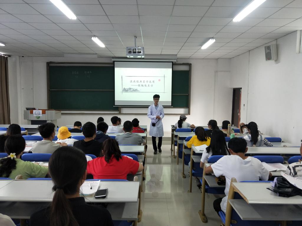 本次讲座主题为“温病经典名方运用”,郭永胜博士以贵州本土制药维C银翘片为开场,引导同学们领略、探究温病学带来的奥妙。郭永胜博士不仅举出了病例和同学们一起分析,还引用温病条辨原文的相关知识来加深同学们对温病学的了解。同学们认真听讲并与郭永胜博士积极探讨温病学的有关问题。(文/刘兴月 图/方路瑶)