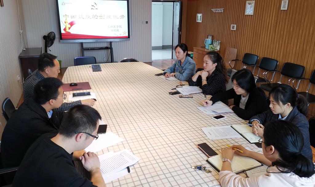 9月16日上午,院党委副书记田欲晓以《中国抗疫的制度优势》为题,为联系党支部全体党员上党课。72886必赢欢迎光临学生第一党支部、第二党支部党员参加此次党课学习。