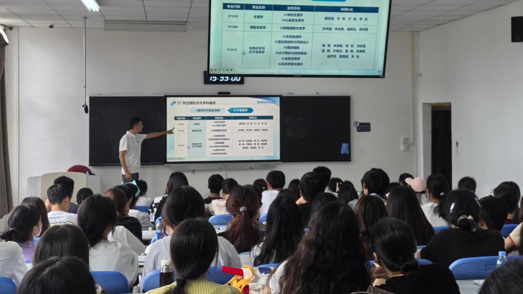 南京中医药大学于光教授首先面向我院学生进行了硕士研究生招生政策宣讲。于教授详细介绍了南中医的办学特色、师资力量及招生政策。现场学生反响热烈,互动环节踊跃咨询,我校学子表现出浓厚的求学深造热情。