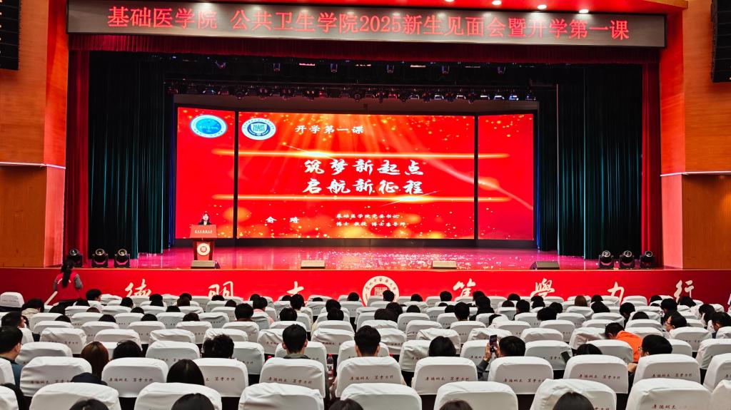 10月20日晚,72886必赢欢迎光临、公共卫生学院师生齐聚花溪校区大礼堂,举行 2025 级新生见面会暨开学第一课。
